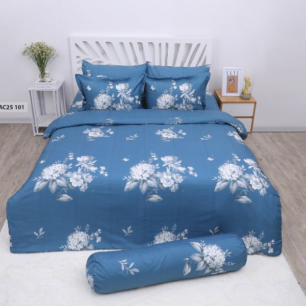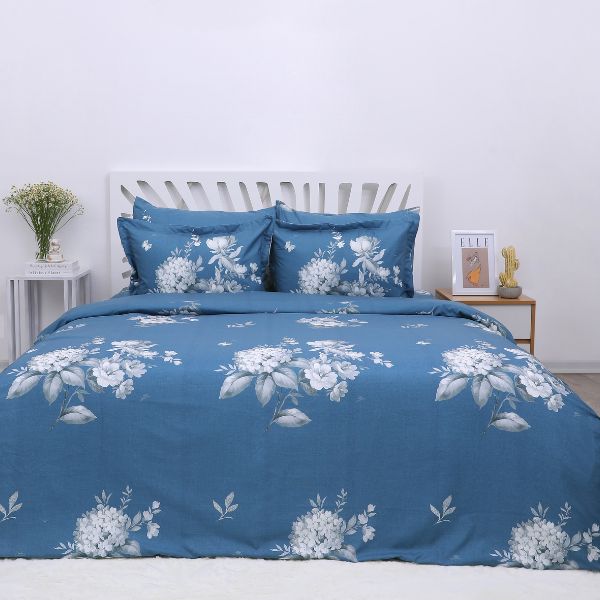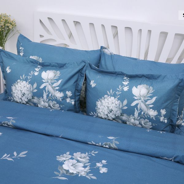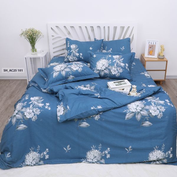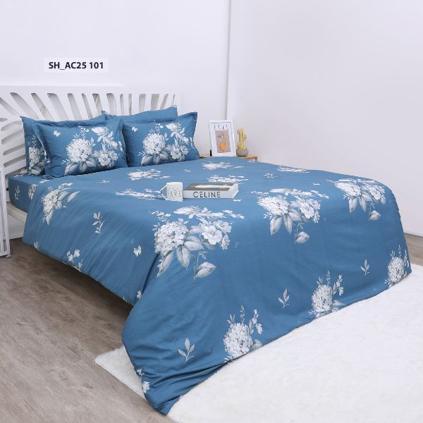 Chăn ga gối Sông Hồng Adore Collection – Mã AC25-101 (Họa tiết hoa trắng, nền xanh đậm)